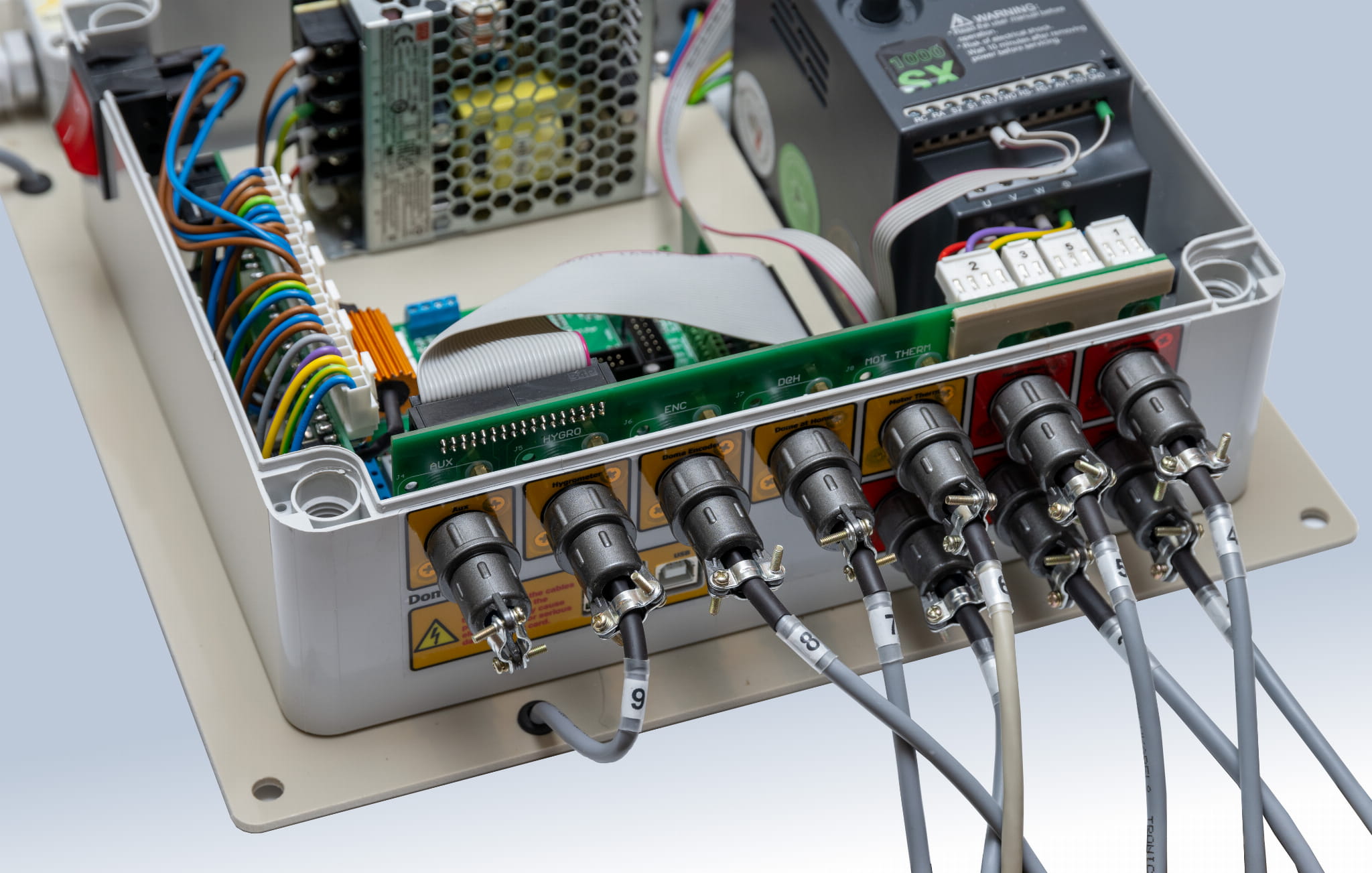 The ScopeDome card has a built-in observatory heating control system. It allows heating of the electronics, motors and mirrors of the telescope.